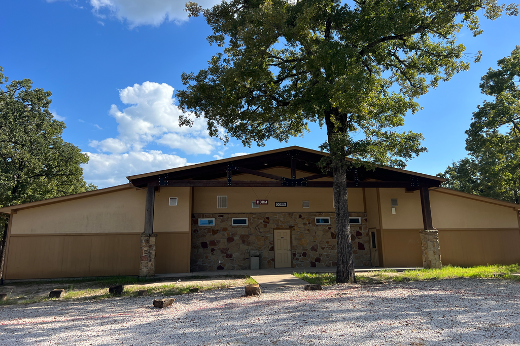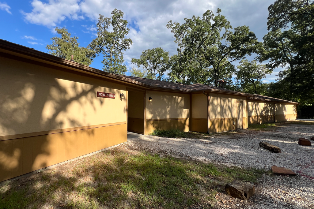 Sleeps 52 total in twin sized bunk beds. This is a mini version of the dorm. It has 2 wings with a common meeting room in the middle. The luxurious feature is the back deck which offers a great spot for small group discussions with an outdoor fireplace to add ambience in the winter months. Click images below to enlarge.