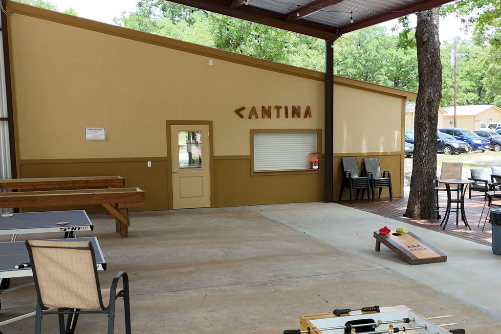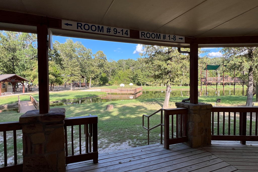 Come here to hang out, play the various table games, or sit on the deck to have small group discussions. This open air pavilion also houses our Camp Store & Cantina. Pick up a refillable water bottle, coffee mug, or a variety of clothing options here. Click images below to enlarge.