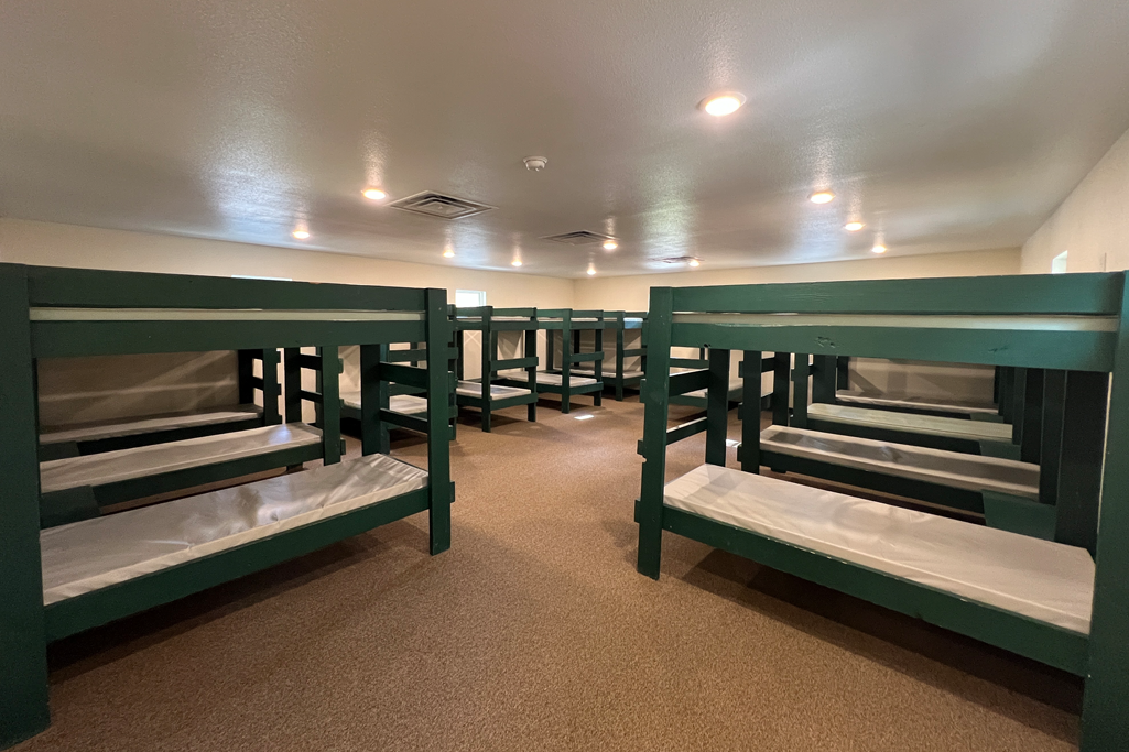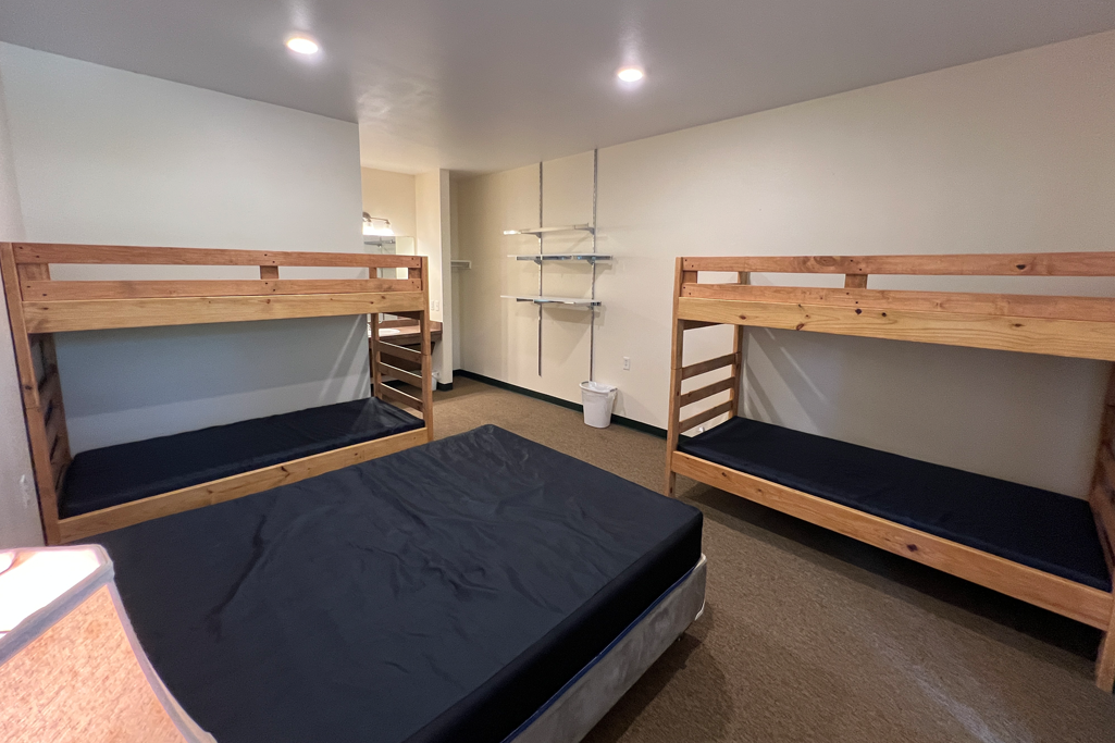 This privatized lodging is similar to a motel set up. Each room has a single queen bed with 2 sets of bunk beds. We have a total of 13 rooms available for guest rental. Click images below to enlarge.