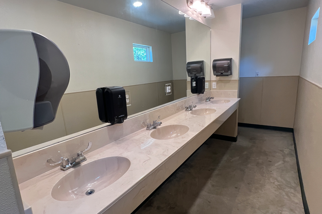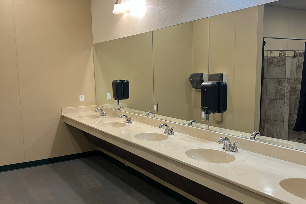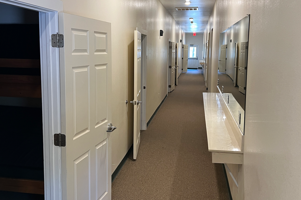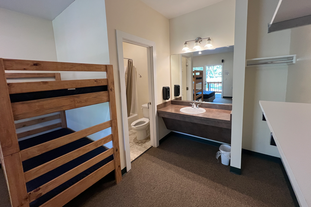 Sleeps 24 total in twin sized bunk beds. Our bathrooms are tiled showers, cultured marble sinks, and clean toilets. Click images below to enlarge.