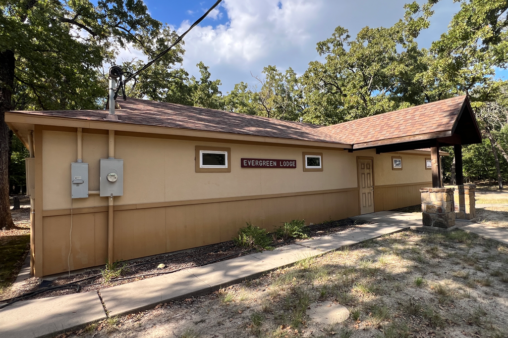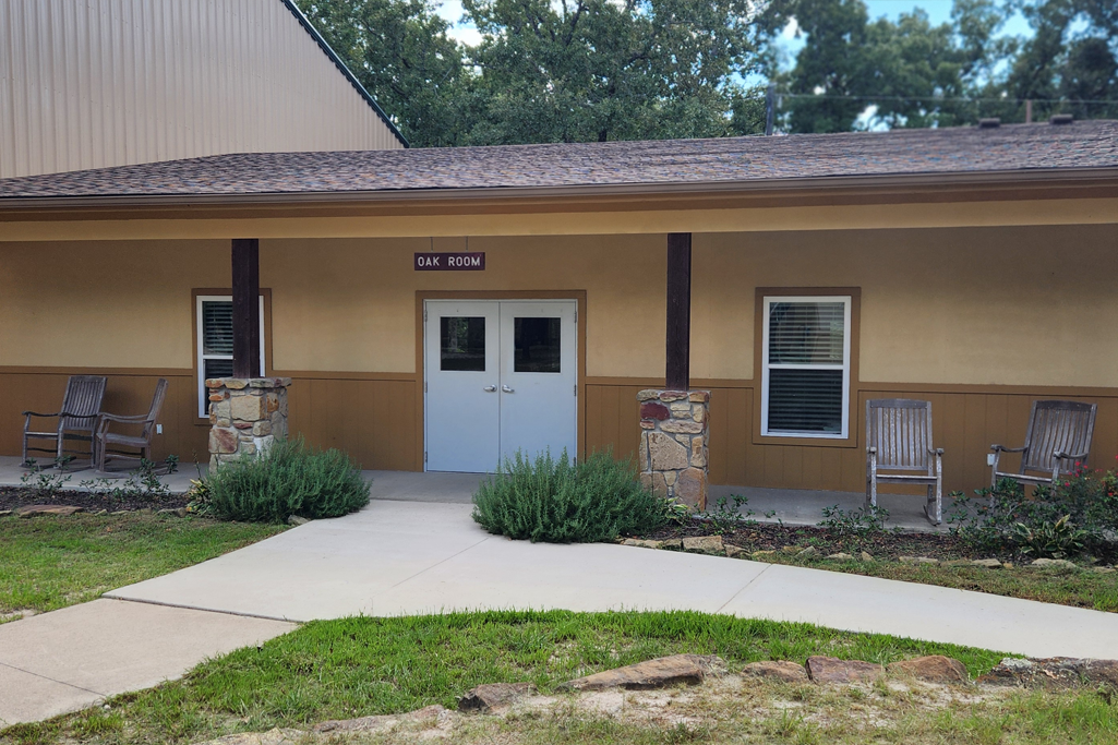 The meeting room is automatically included for groups renting Elm Lodge. The center meeting room is roughly 23’ x 30’. It has a large 80” television mounted on a wall with a handy HDMI port on the wall below for projecting lyrics and teaching presentations. The storage closet has over 40 cushioned chairs and four 6’ tables. There is a small sink, refrigerator, and microwave to address the snacking needs for your group.