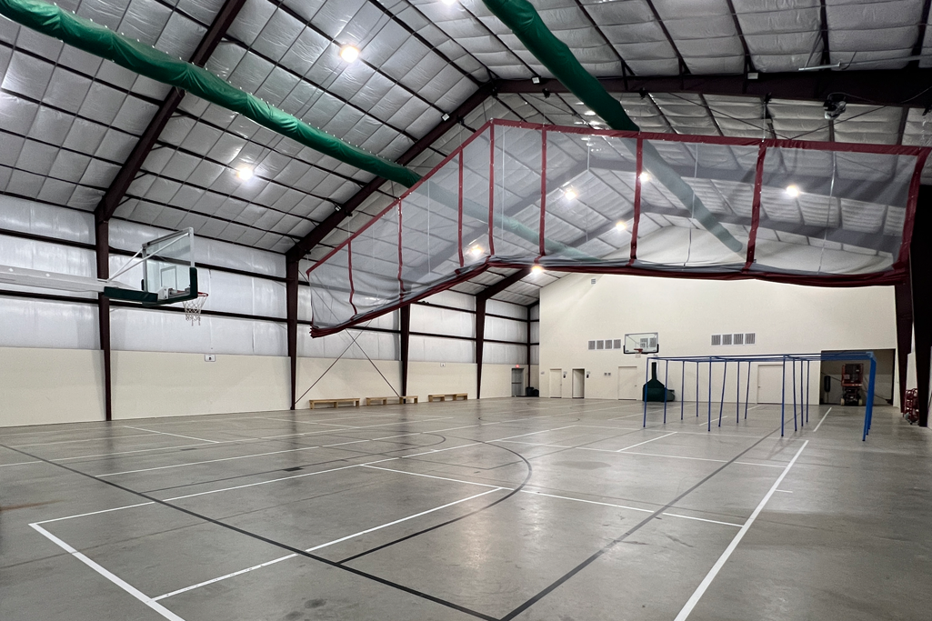 The gym is a common space that is a great reprieve from the Texas climate. It is air conditioned & heated, depending on the season. It contains 2 basketball goals, a nine square court, and lines painted for 4 pickleball courts, volleyball, and basketball. Click images below to enlarge.