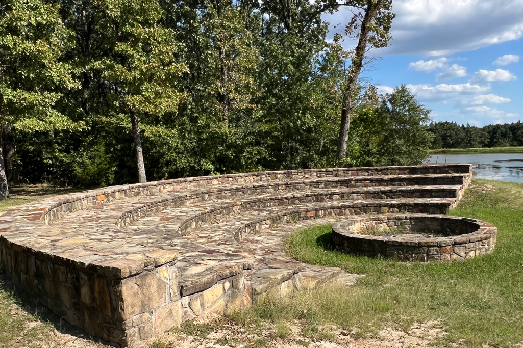 This amphitheater is located on our western edge of the property and overlooks the lake. The fire pit is where our Akiva staff will build a complimentary fire for your group based on your scheduling request. This stone gathering space can easily accommodate over 300 people.